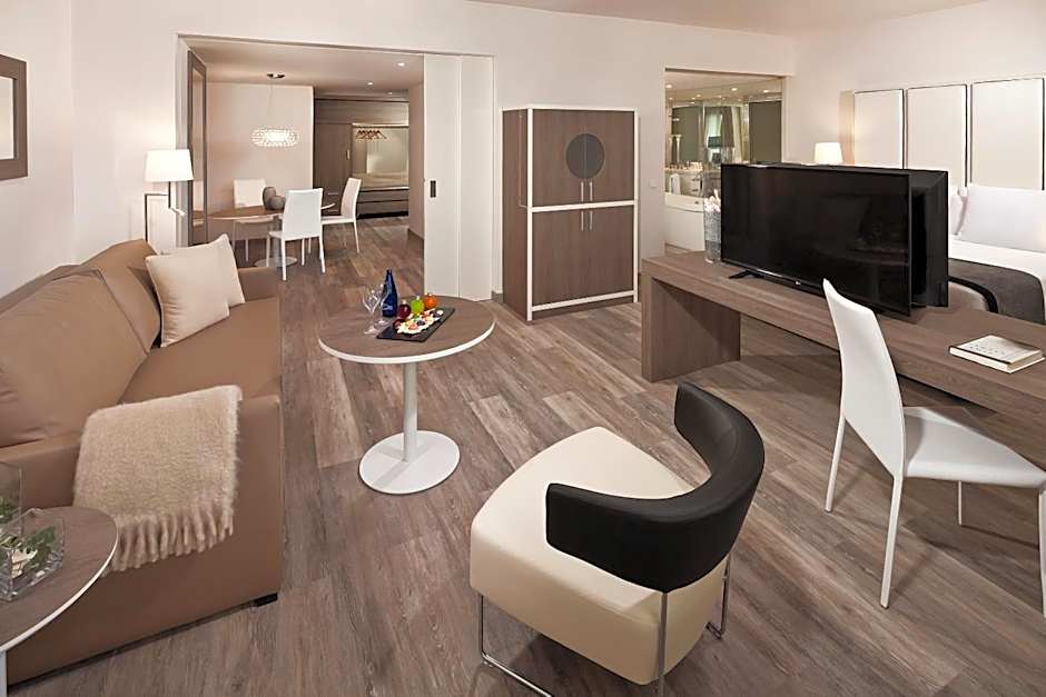 The hotel accommodates a wide range of travelers with multiple room configurations. Notable options include the Suite Duplex, which accommodates up to 8 adults and 5 children, and the Family Junior Suite (603 sqft) that sleeps 4 adults and 2 children and includes a sofa bed and queen bed. With numerous family-friendly and group-oriented layouts, there are plenty of choices to suit couples, families, and larger gatherings alike.